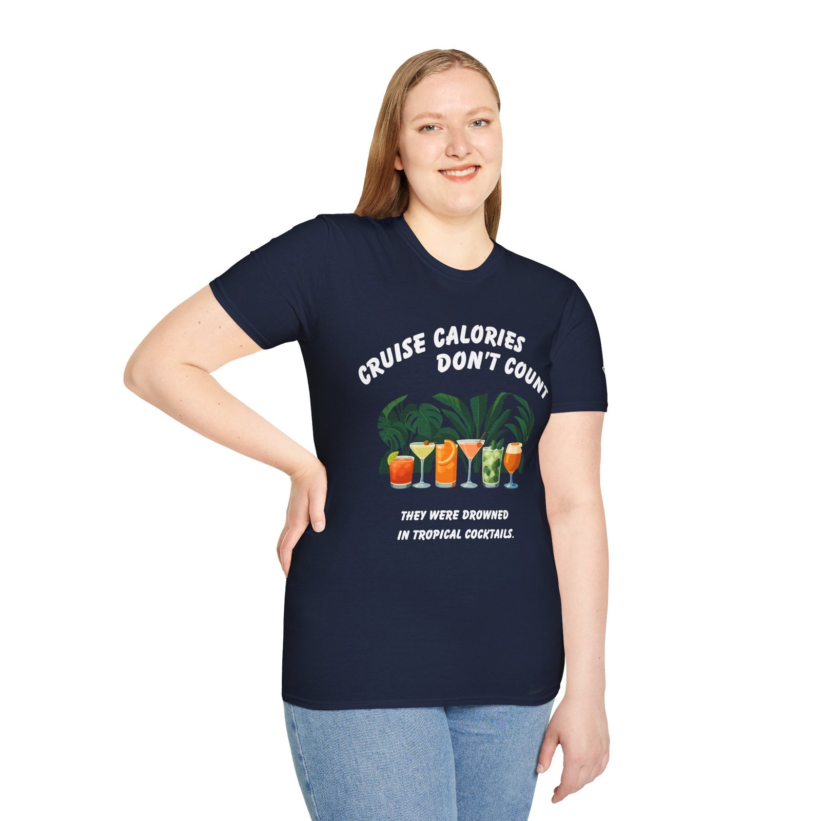 Sail into comfort and style with our Cruise Calories Don’t Count – They Were Drowned In Tropical Cocktails unisex softstyle t-shirt. Whether you’re docked on dry land or living the high-seas buffet life, this tee is your official excuse to indulge.