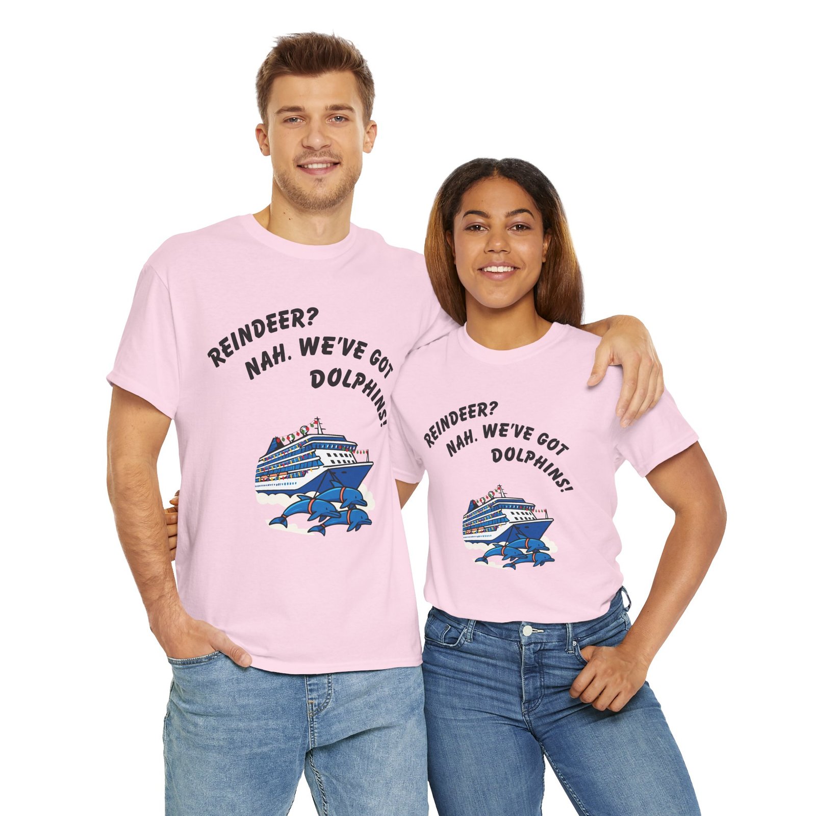 Celebrate the season with a wink and a wave 🌊. This Reindeer? Nah. We’ve Got Dolphins! holiday tee is the perfect gift for cruise lovers, Christmas travelers, and anyone who believes festive feasting is guilt-free when you’re on deck. Featuring a bold, cheeky slogan and premium cotton comfort, this sea-themed Christmas shirt brings humor and holiday spirit to every port of call.